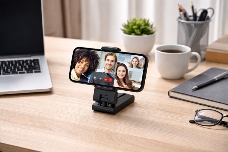 Soporte plegable y ajustable para móvil, diseñado para ofrecer una visualización cómoda y estable en cualquier situación. Ideal para viajar, trabajar, ver vídeos o realizar videollamadas, tanto en casa como fuera de ella.